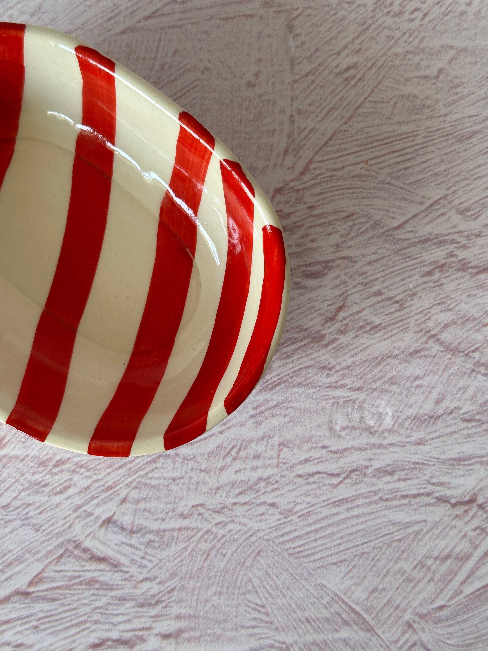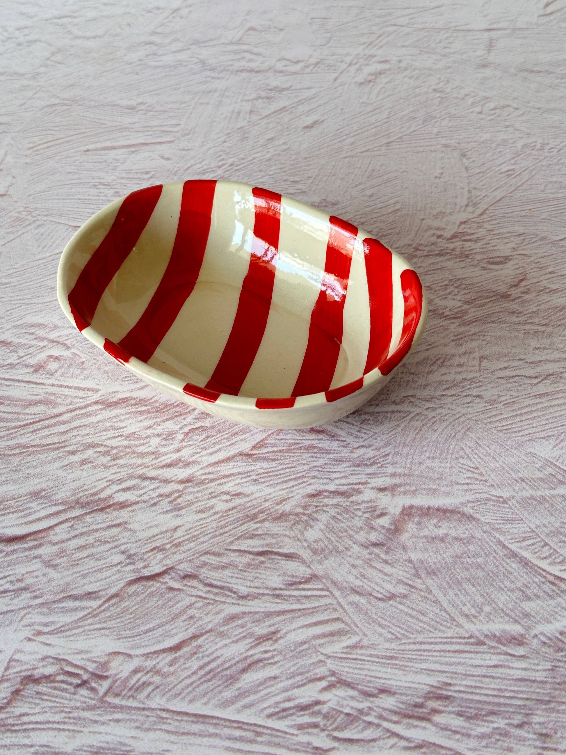 Ceramic stripe Bowl, Red 7x5x2 Inches