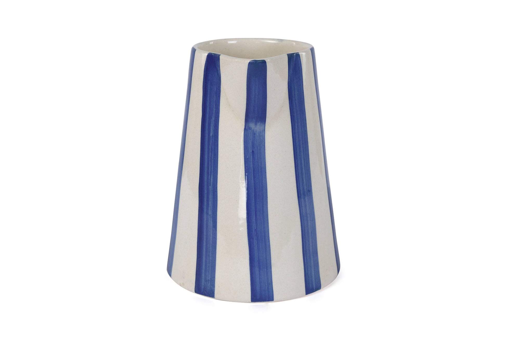 Ceramic Stripe Pitcher, Blue - 8.25x8.25x8 Inches