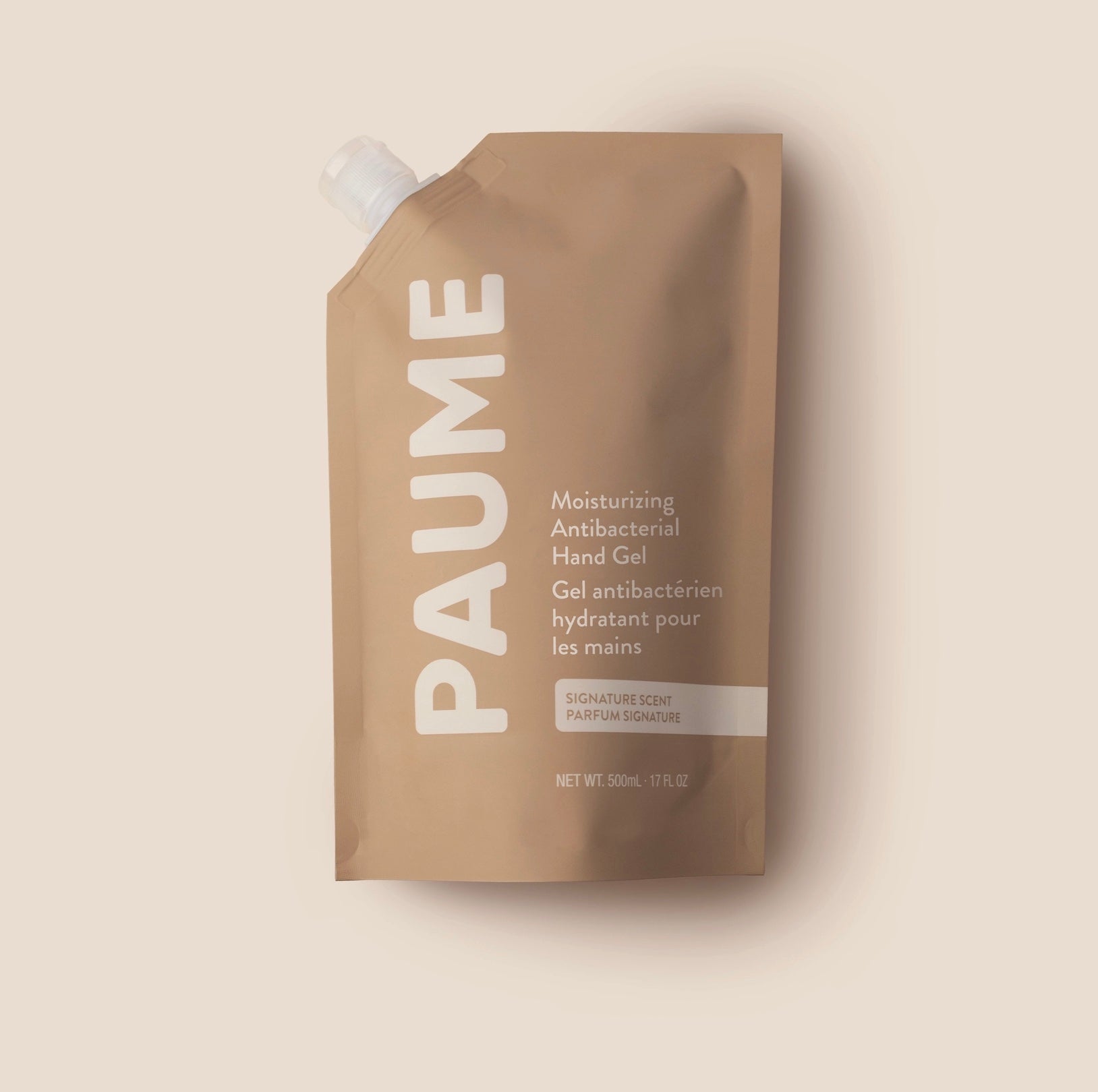 Our 17oz Refill Bag is a low waste way to refill your travel bottle and PAUME Pump. PAUME is hand sanitizer that nourishes as it protects.