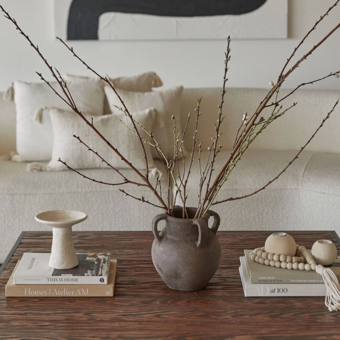 This is a one-of-a-kind piece. Best styled as décor. Please do not add water to the piece as it is composed of clay and will cause damage.