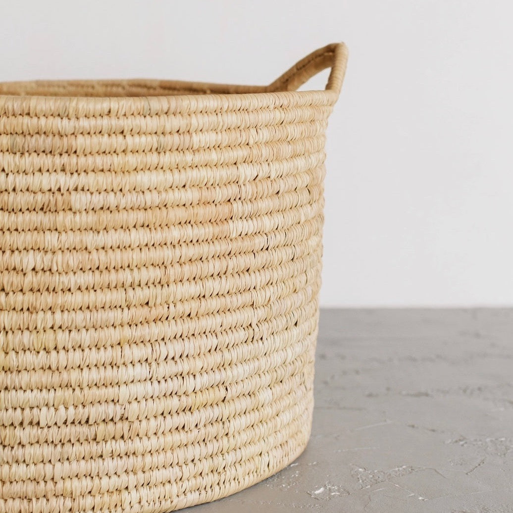 Laundry basket in a low profile. Our palm basket's sturdy handles provide easy lifting, while the ample storage space makes this a versatile bit of decor. Our fair trade palm baskets reflect handcrafted design, gorgeous detailing, and natural texture. The various nuances and tones of the palm leaves ensure that each basket is truly unique! Available in several shapes & sizes, these handwoven beauties are a thoughtful and functional addition to any space.